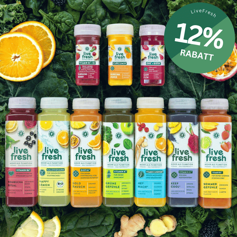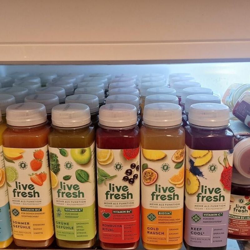 LiveFresh vereint die günstigsten Kosten mit der besten Gesamtausstattung: Längste Haltbarkeit (4 Wochen), schonendes HPP-Verfahren, höchste Geschmacksvielfalt (7 Säfte + 3 Shots), wissenschaftlich entwickelte Struktur und exzellente Kundenbewertungen.